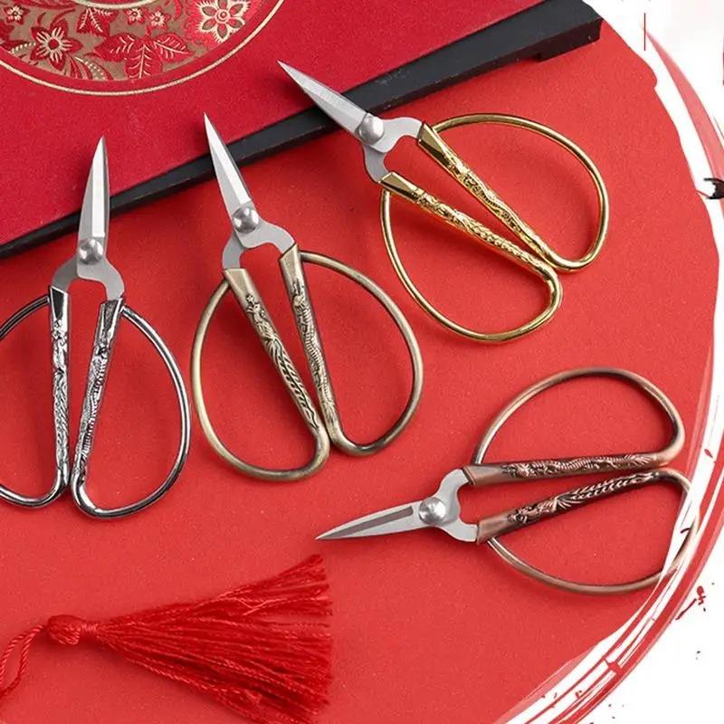 Mini Tijeras de Costura Retro de Acero Inoxidable con Punta Afilada y Hoja Recta, Estilo Sencillo y Duradero, Mango de Acero para Cutículas