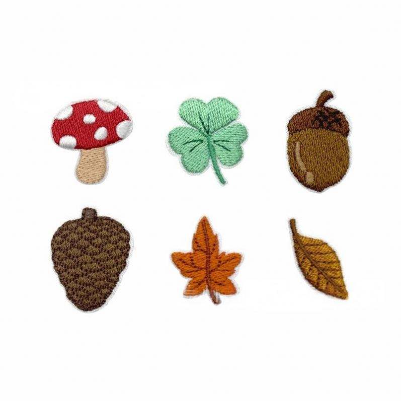 Parche Adhesivo Miniatura con Diseño de Hongo, Castaño, Trébol de Cuatro Hojas y Hoja de Arce para Decoración de Ropa, Zapatos y Sombreros