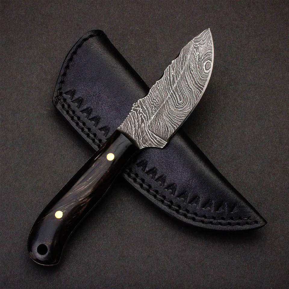 Mini cuchillo para desollar con hoja fija de acero de Damasco Logotipo personalizado Mango de madera Cuchillo Bowie de grado DIY a la venta a un precio barato