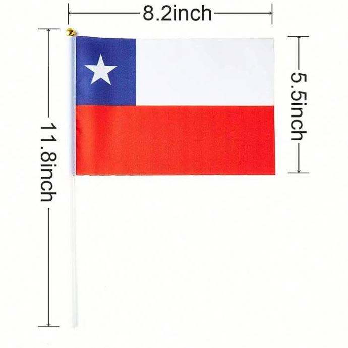 Mini Banderas Chilenas de Mano, de Poliéster, Personalizadas con Asta de Madera, Venta al por Mayor, 100% Poliéster
