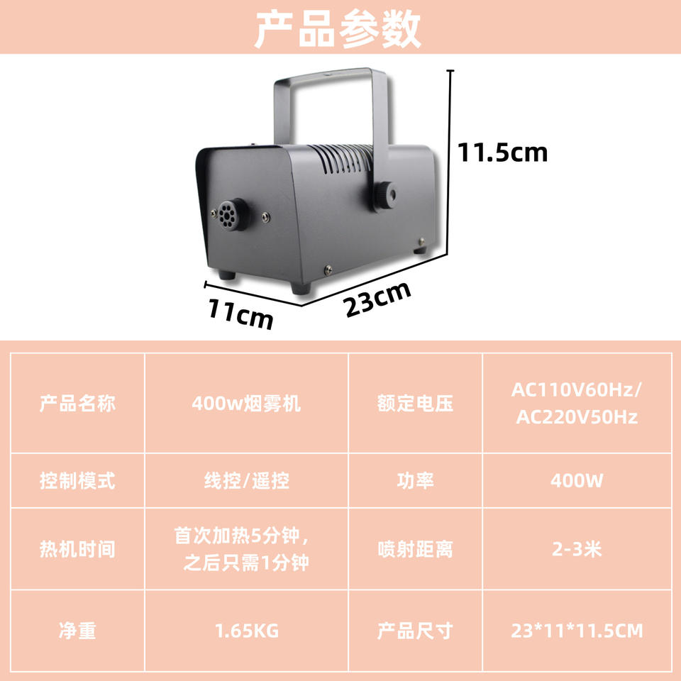 Mini Máquina de Humo de 400W, Portátil, con Control Remoto, Sin Luz, para Escenarios, Bodas, Uso en Interiores
