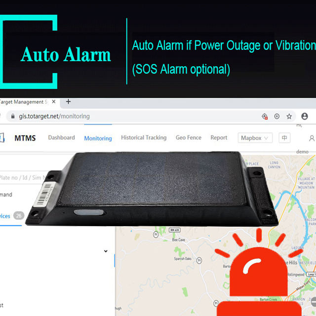 Impermeable, Anti-shock, -Velocidad de alerta, Geovalla, Comprobación de registro de historial, Monitorización en tiempo real, Alarma de manipulación, Imán instalar opcional, Instalación del tornillo, Alarma de batería baja, Alarma de la vibración, Sol Solar Sol Carga