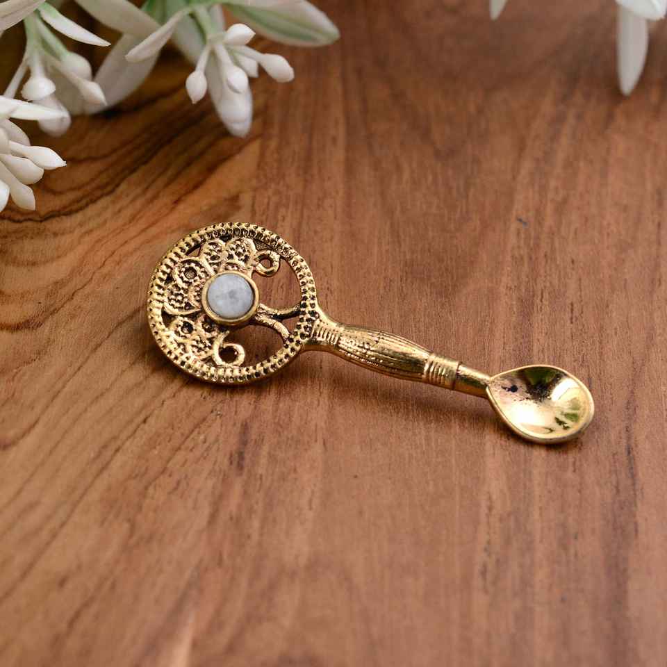 Mini colgante de cuchara dorada, colgante de cuchara bohemio de latón con piedra lunar con regalo de cadena para ella.