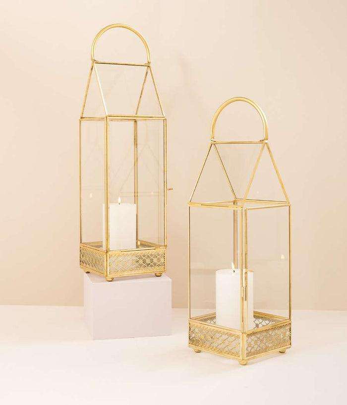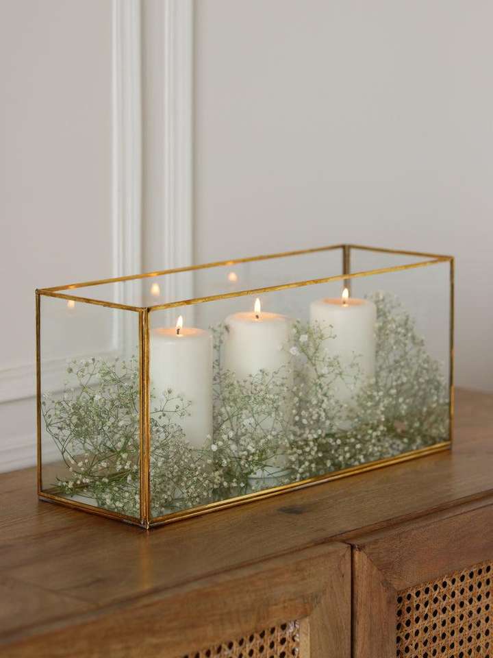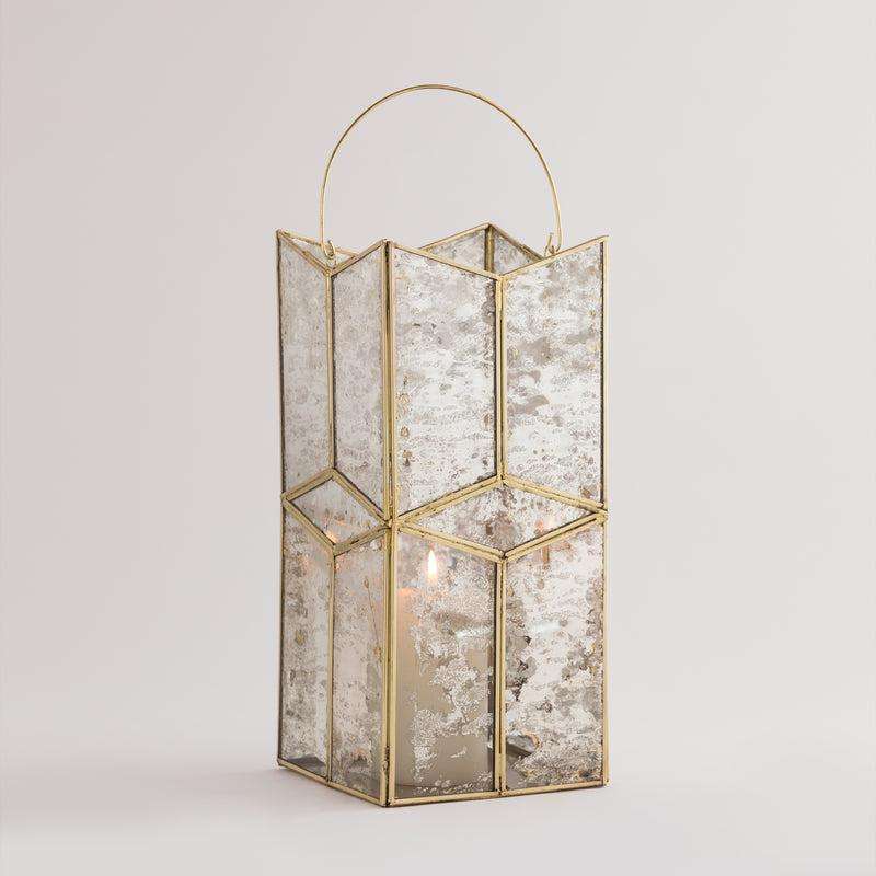 Mini Lámpara de Mesa para Velas, Portavelas Geométrico de Vidrio, Elegante Portavelas Antiguo de Metal y Vidrio