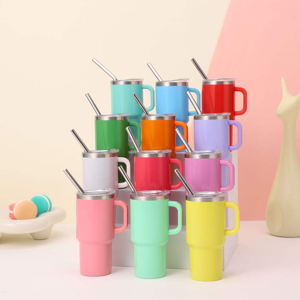 Mini Vaso de Chupito con Pajita y Tapa, Vaso Bonito de Acero Inoxidable con Asa, Vasos Térmicos de Doble Pared con Aislamiento al Vacío