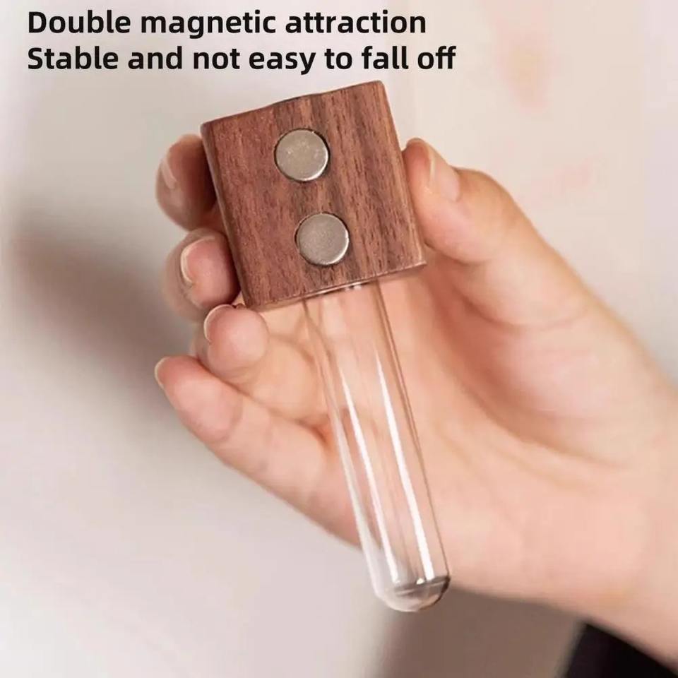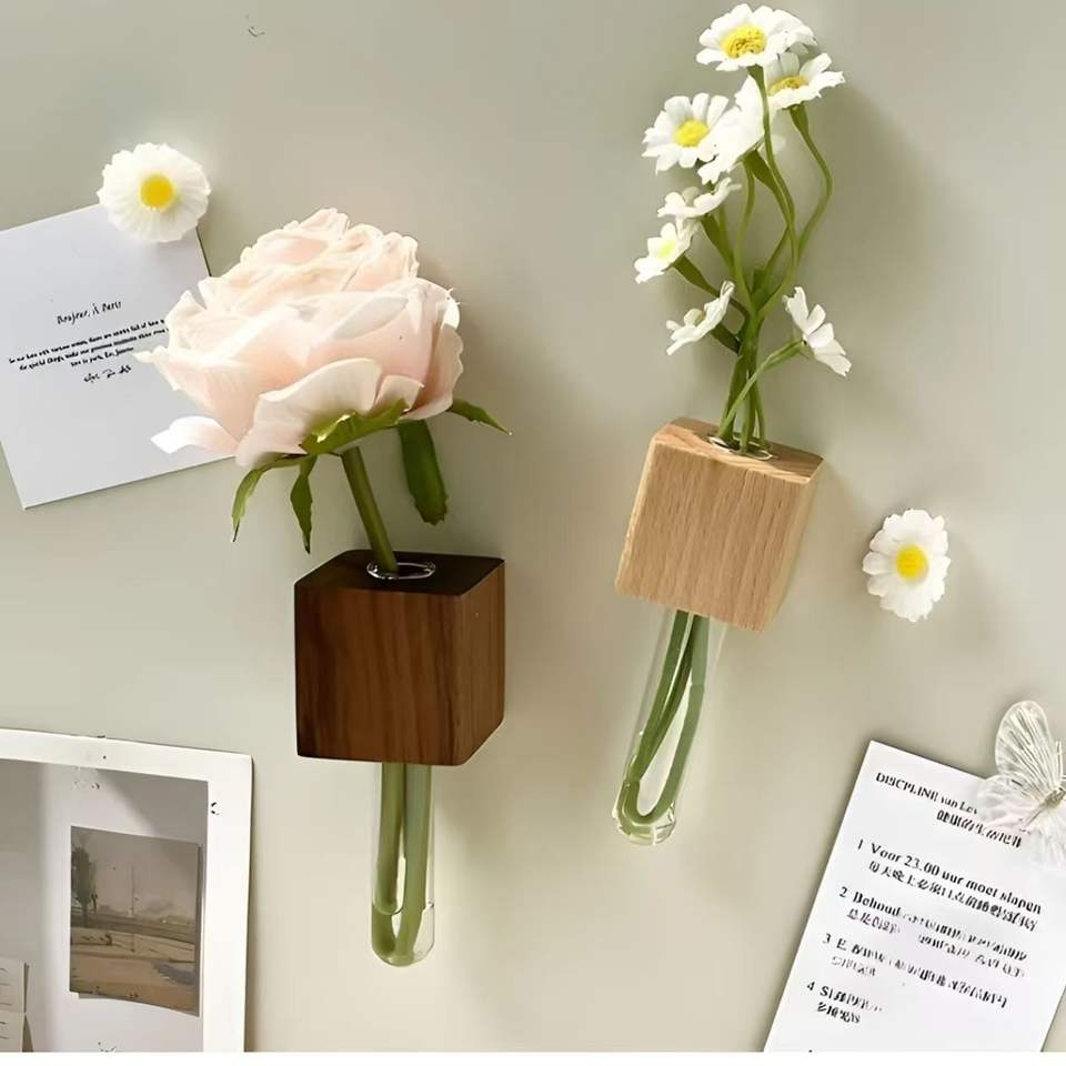 Mini imanes de nevera con forma de florero, bonitos imanes de pared de madera con tubo de ensayo para plantas y flores, maceteros magnéticos con tubo de vidrio