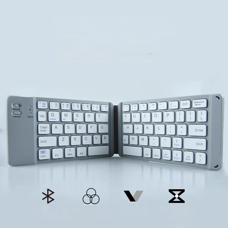 Mini teclado inalámbrico BT silencioso, recargable, ultrafino y plegable para portátil, tableta, teléfono, con diseño en francés, ruso, brasileño y árabe.
