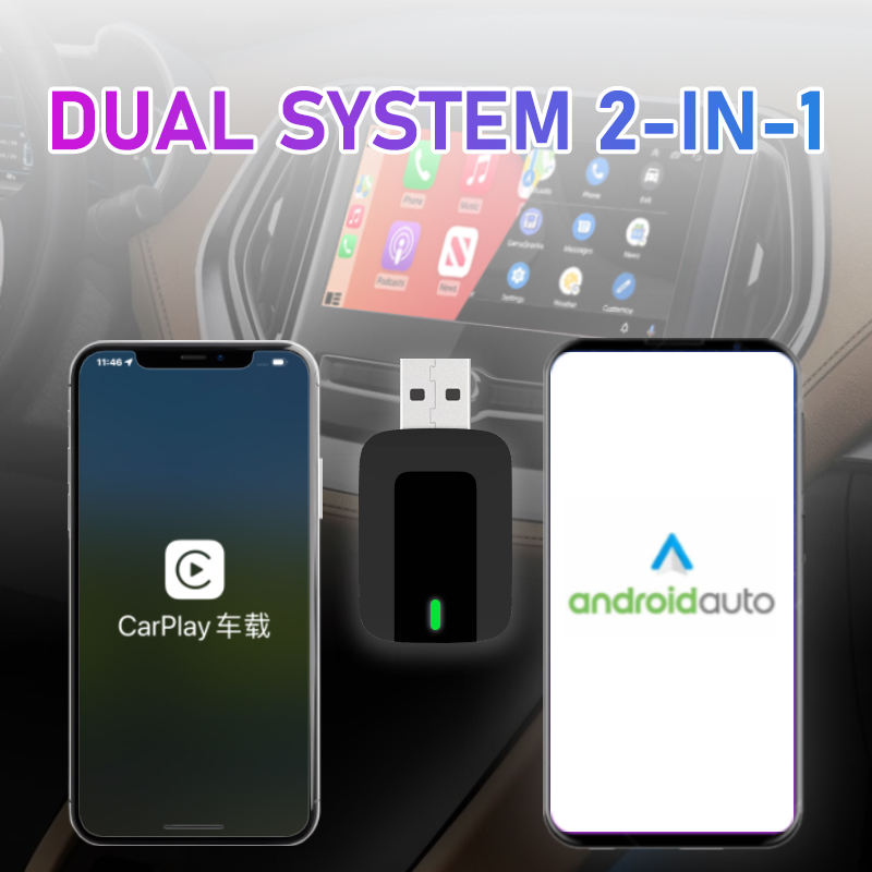 Adaptador USB 2 en 1 Inalámbrico Mini CarPlay y Android Auto, Conexión Rápida Plug-and-Play, WiFi6, Bluetooth 5.4, Allwinner AX1800 ODM