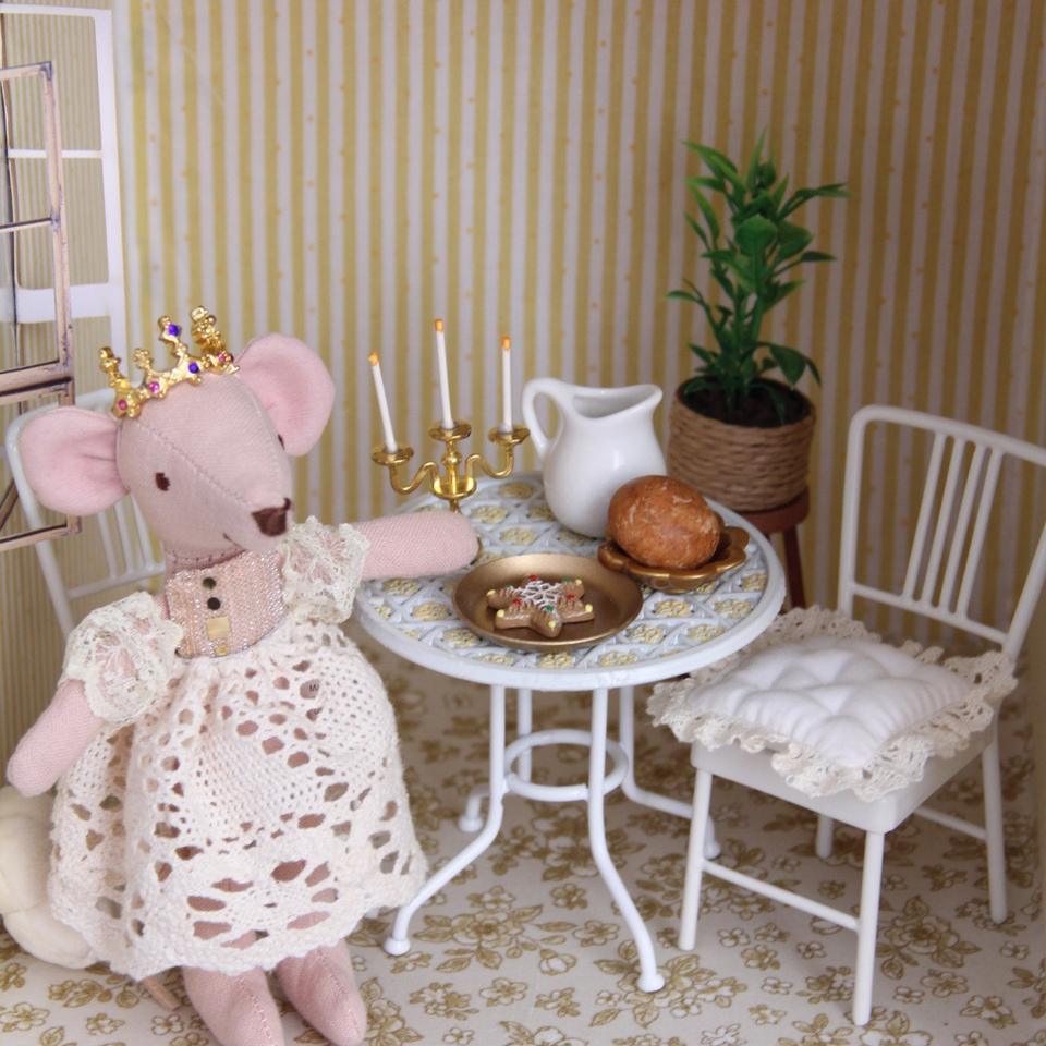 Juego de Mesa y Sillas de Hierro Forjado en Miniatura, Escala 1/12, Utilizado como Adornos de Muebles en Miniatura para Muñecas, Decoración para Casa de Muñecas