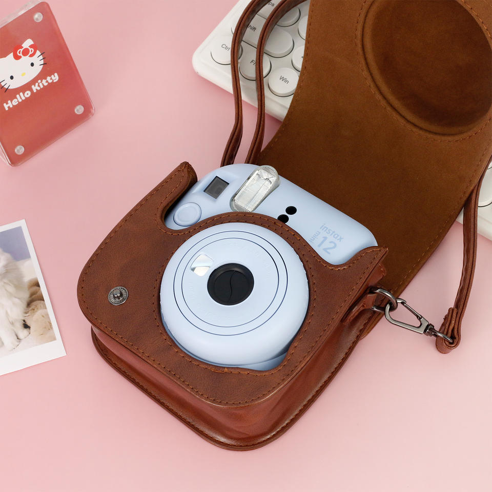 Mini Funda Protectora Cruzada para Instax Mini 12/11/9/8, Estilo Vintage Simple de Cuero PU con Adhesivo Bordado, Bolsas para Cámara