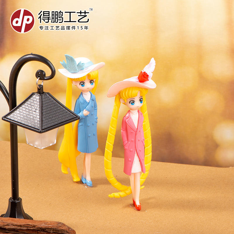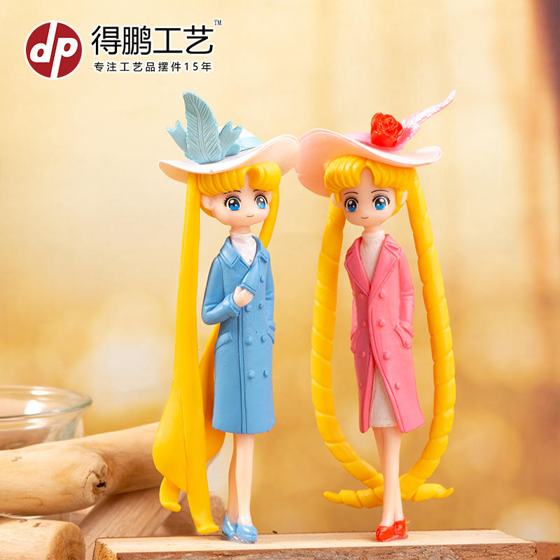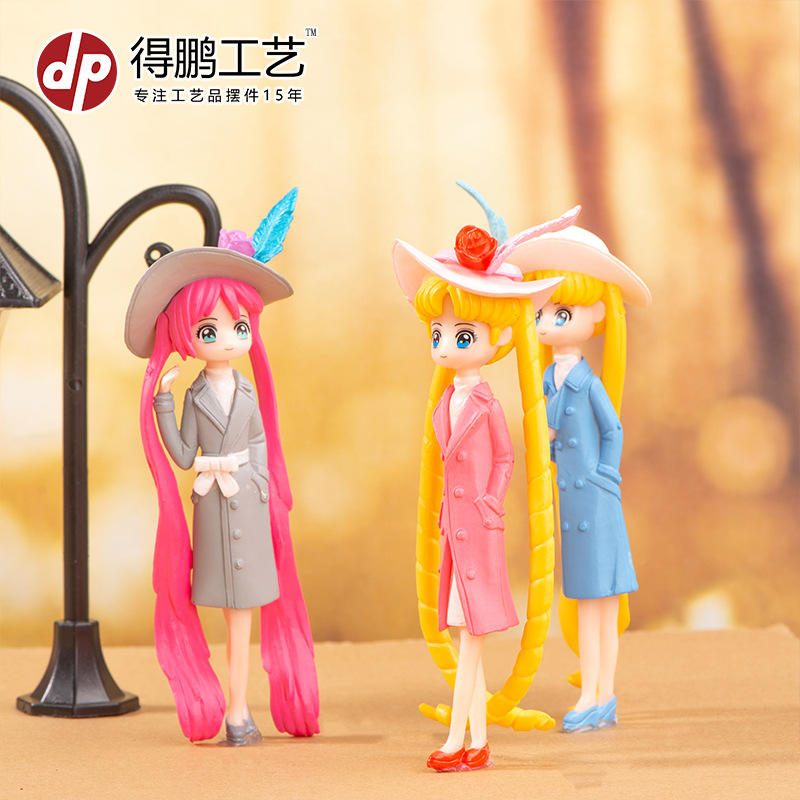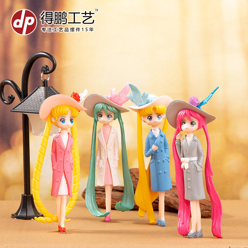 Muñeca en Miniatura de Personajes de Dibujos Animados, PVC, Pelo Largo, Abrigo, Decoración para Niñas, Uso en Interiores D1333