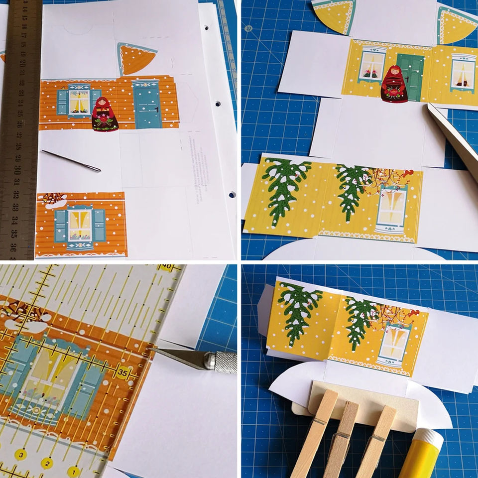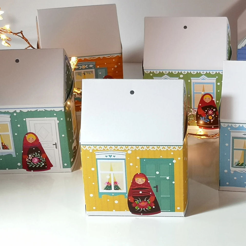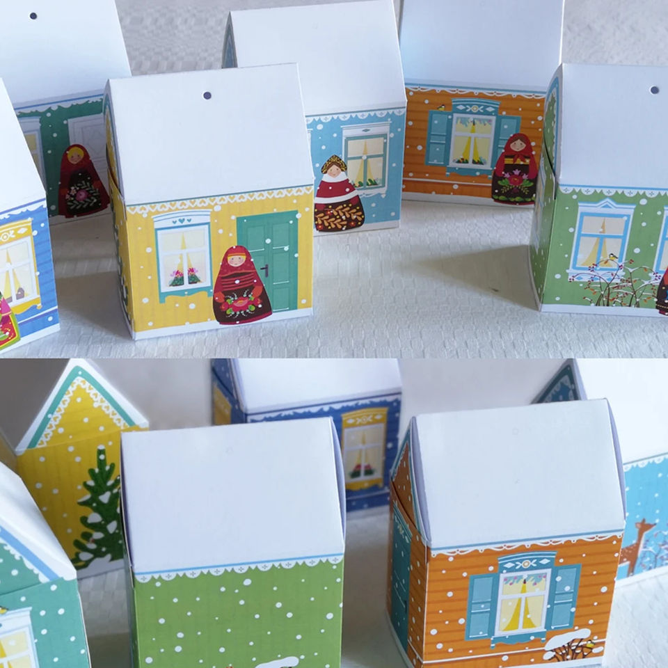 Cajas de Casa en Miniatura, Embalaje DIY para Pequeños Regalos de Invitados, Caja de Papel Estilo Pueblo Eslavo Ruso