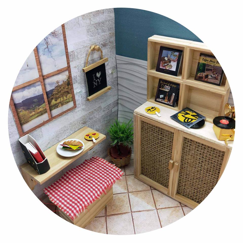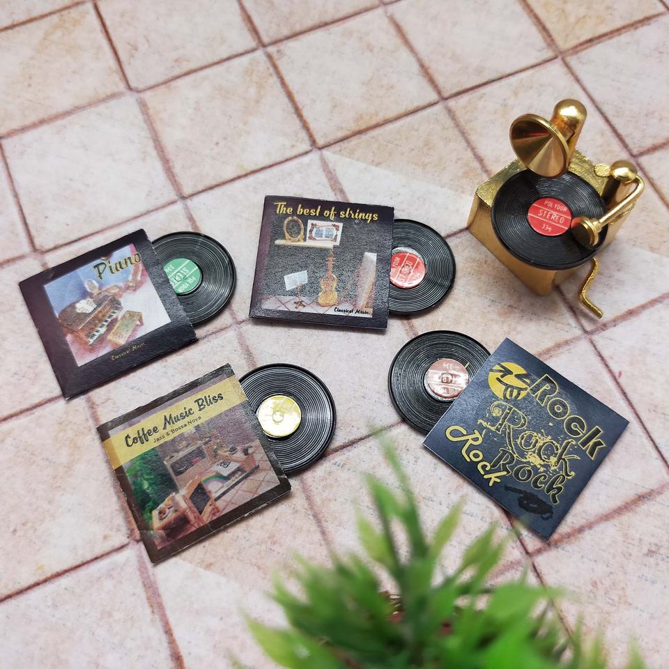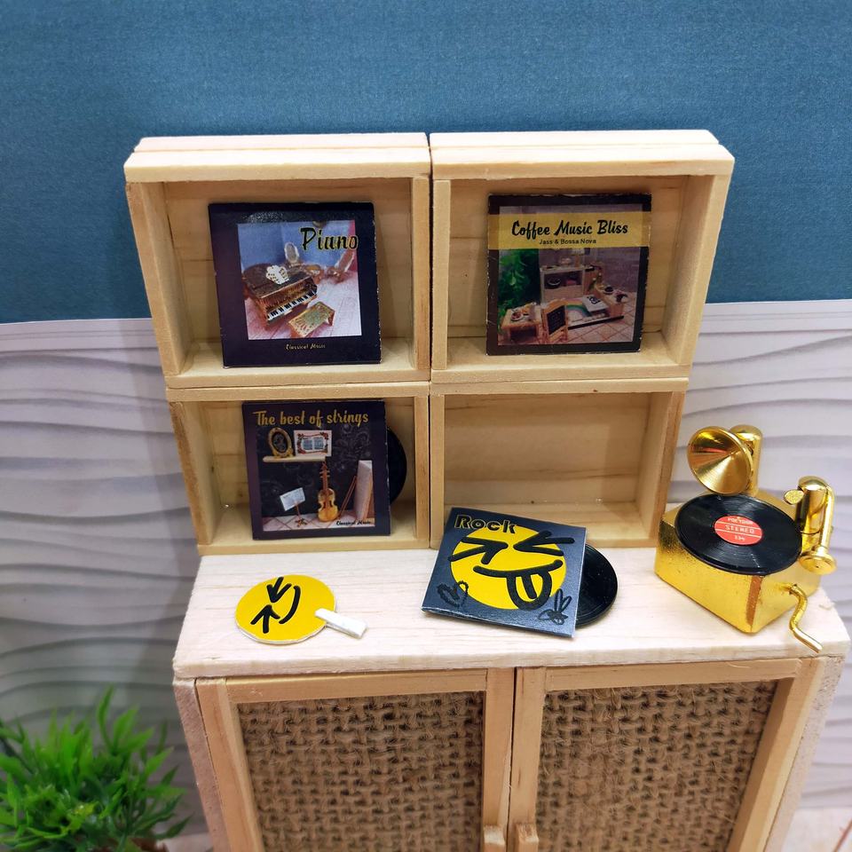 Escala miniatura 1:12 disco de vinilo y gabinete de madera decoraciones Homey