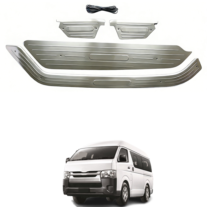 Estribo Lateral para Minibús, Placa Protectora de Acero Inoxidable con LED para HIACE 2008-2018, Kit de Decoración para Estribo de Coche