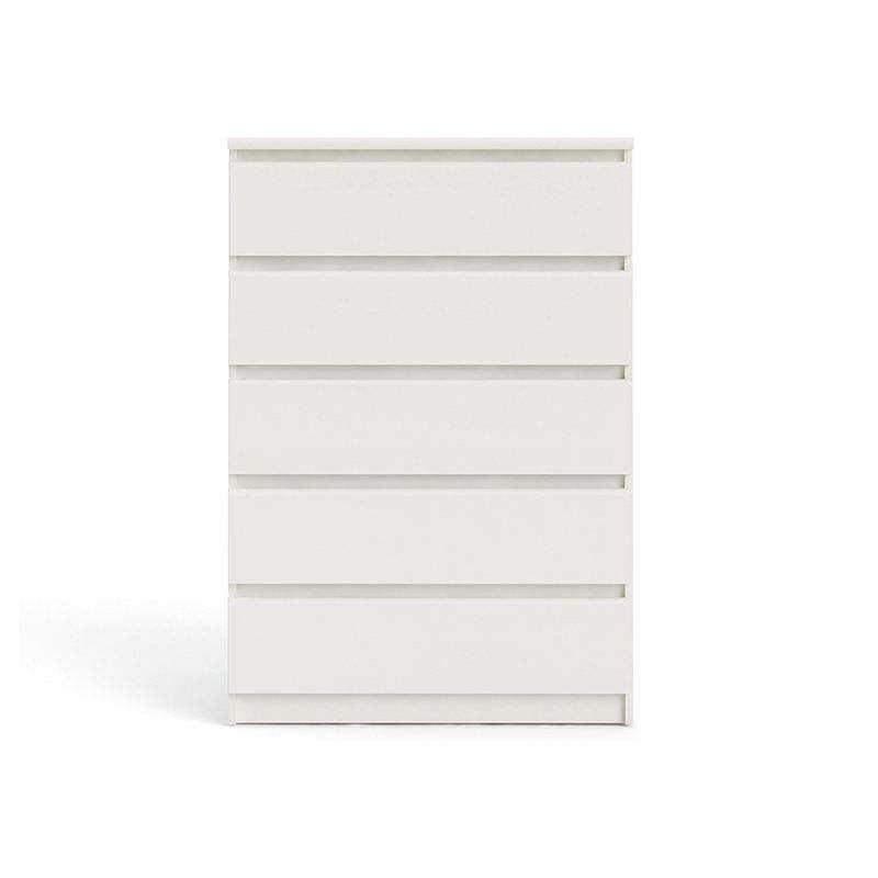 Cómoda Minimalista de 5 Cajones, Color Blanco Brillante, Oferta Especial