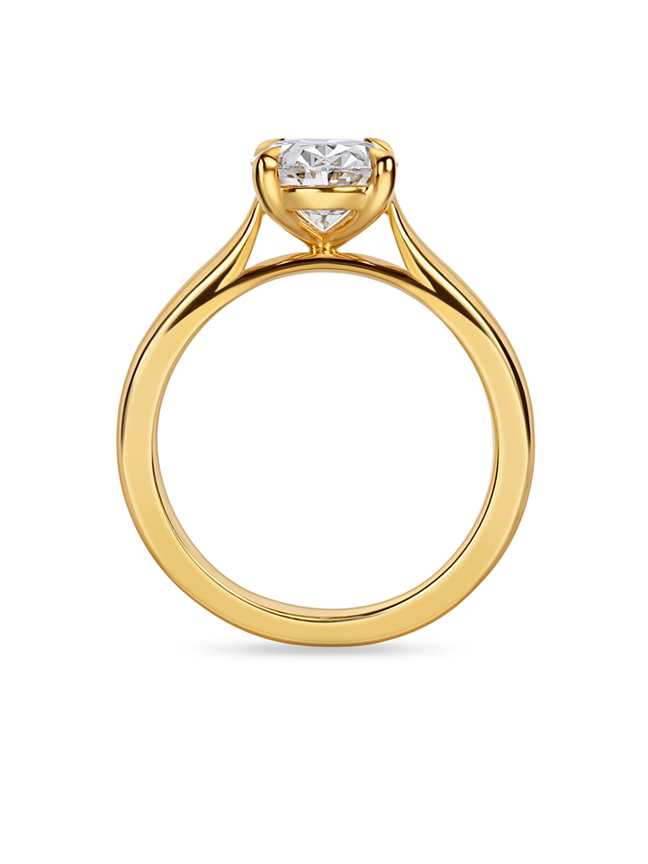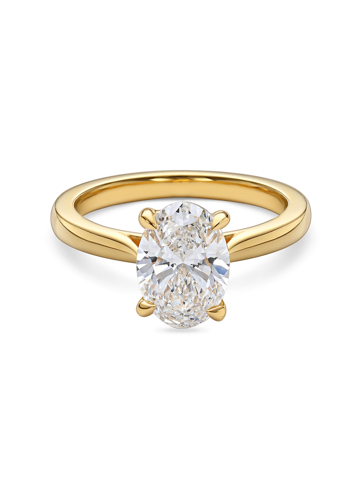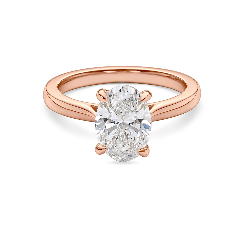 Anillo de compromiso solitario minimalista con diamante ovalado cultivado en laboratorio, oro rosa, halo oculto, elegante anillo de diamante con corte ovalado estilo catedral, joyería.