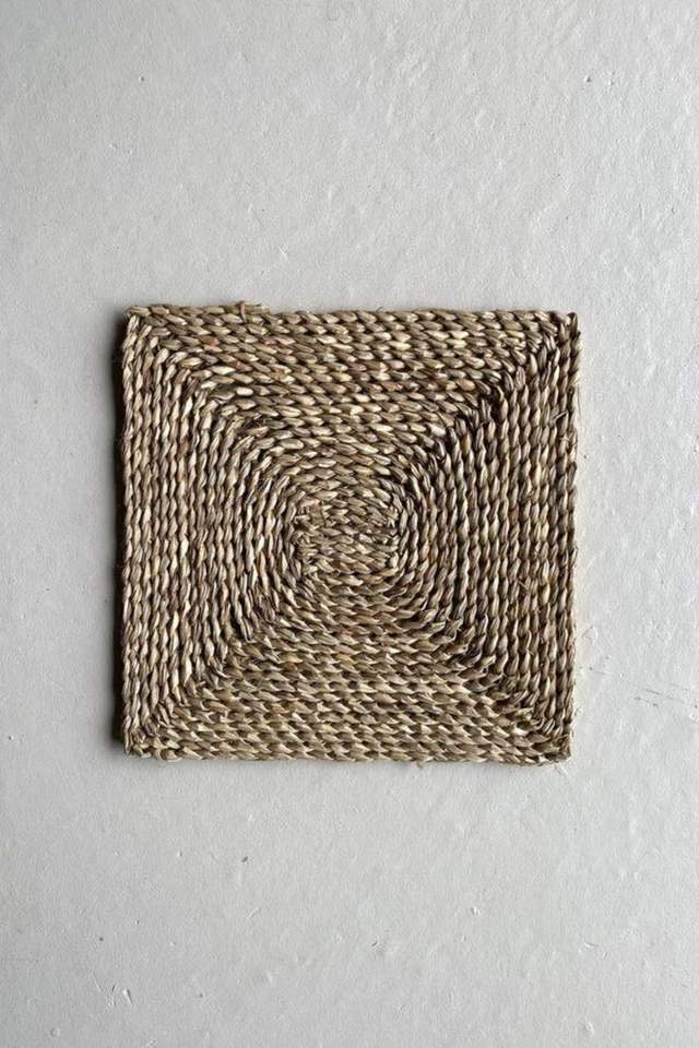Posavasos Cuadrado Minimalista de Ratán Beige Natural, Diseño Tejido a Mano, Ecológico, para Tazas, Vasos, Estilo Boho Escandinavo, Decoración para Sala de Estar