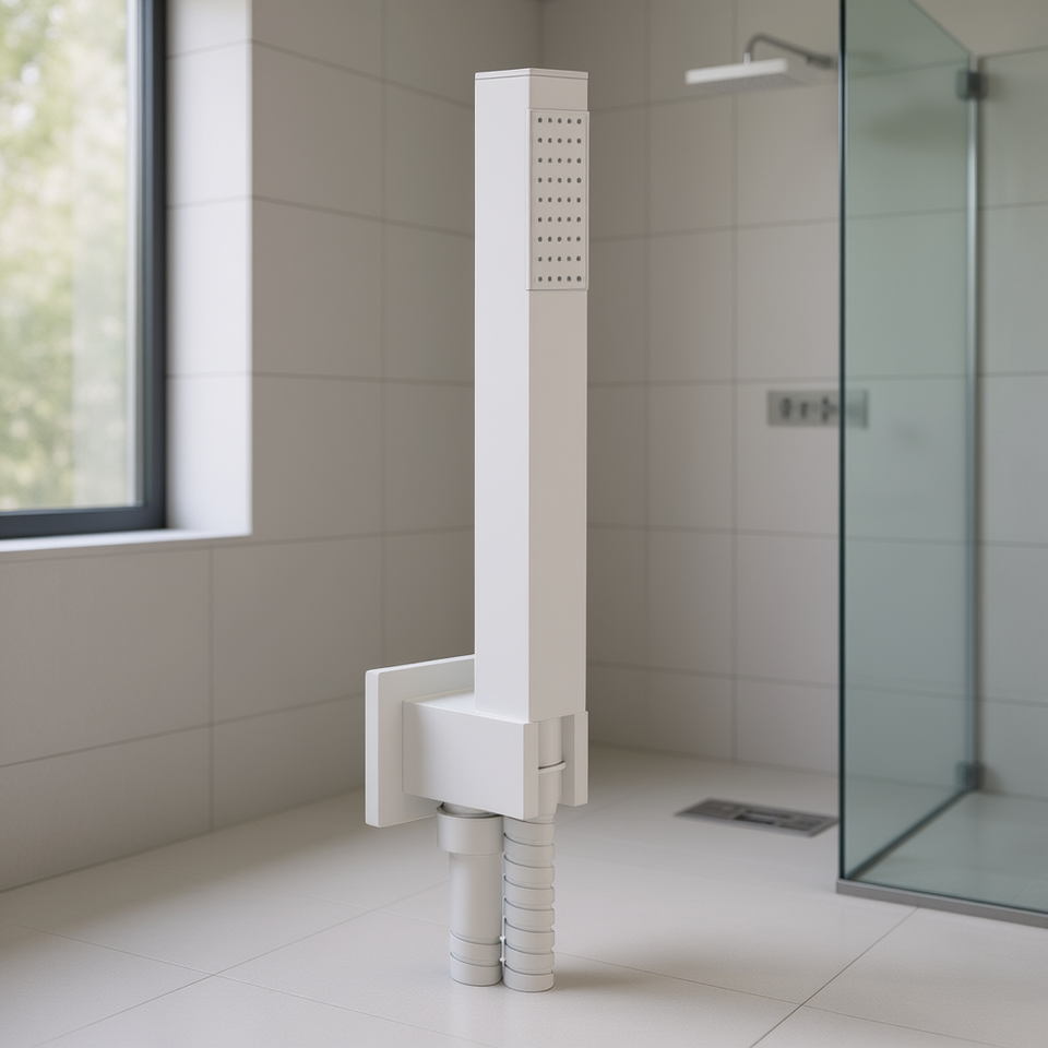 Kit de Ducha Cuadrado Minimalista Blanco Mate de 100 cm de Altura con Cabezal Ajustable para Diseño de Baño Moderno