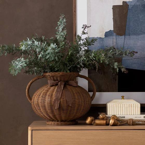 Jarrón de flores de ratán marrón