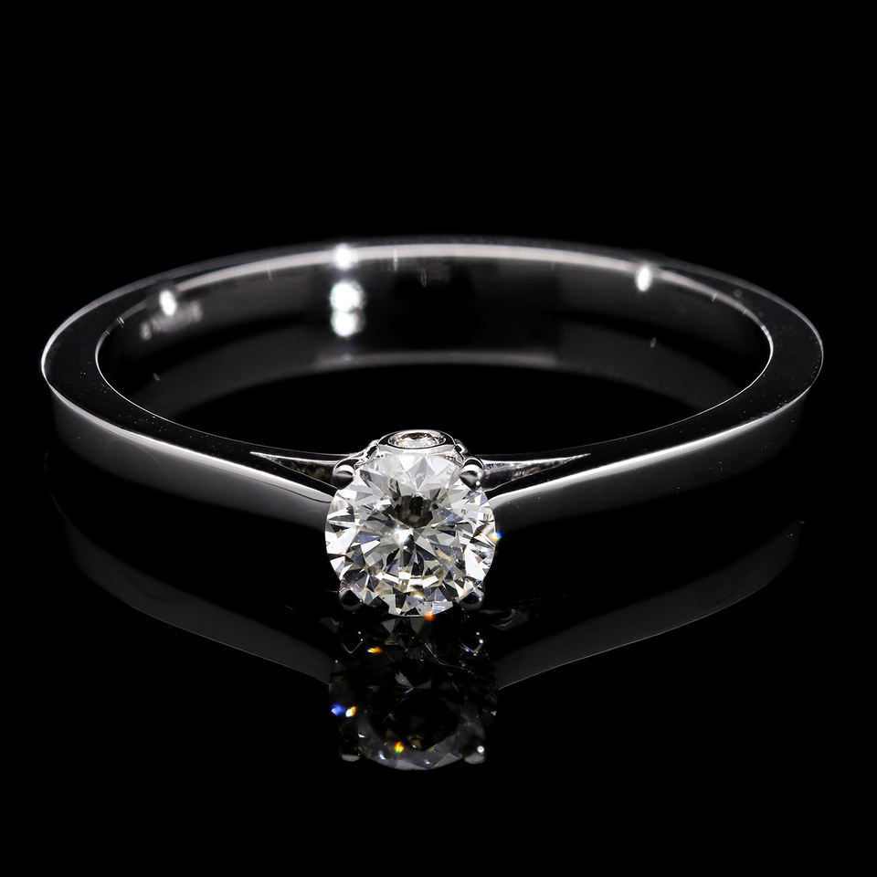 Anillo de compromiso minimalista de oro solitario de 14 quilates con diamante brillante redondo natural de 0,32 CTW en un diseño elegante y moderno de banda cónica
