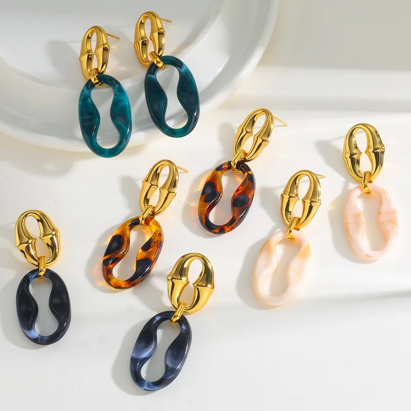 Pendientes Minimalistas de Acero Inoxidable 304 Chapados en Oro de 18K con Resina en Forma de Ocho, Diseñados para un Uso Diario Ligero