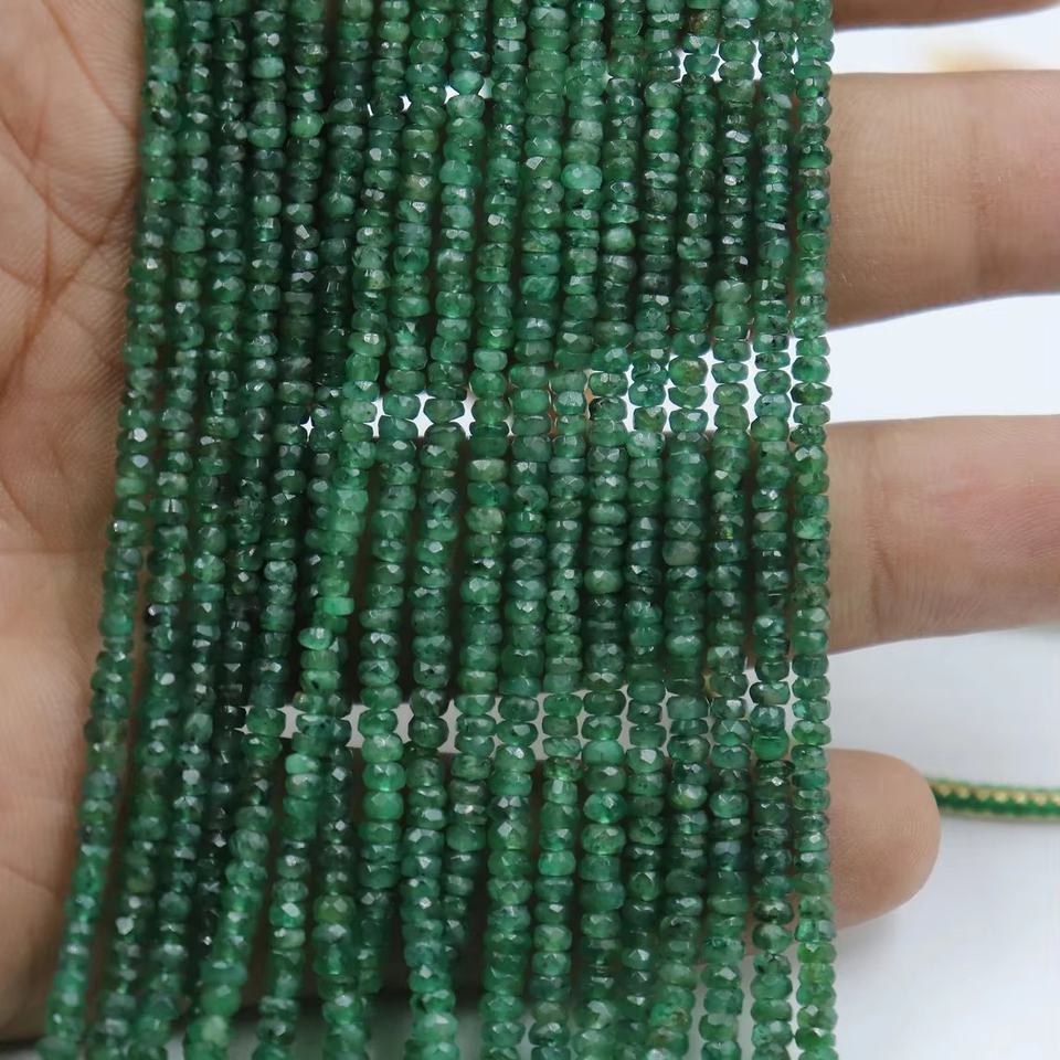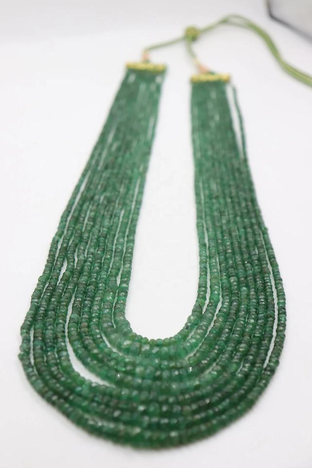 Name:9 Strands Of Natural Zambian Emerald Faceted Rondelle Necklace