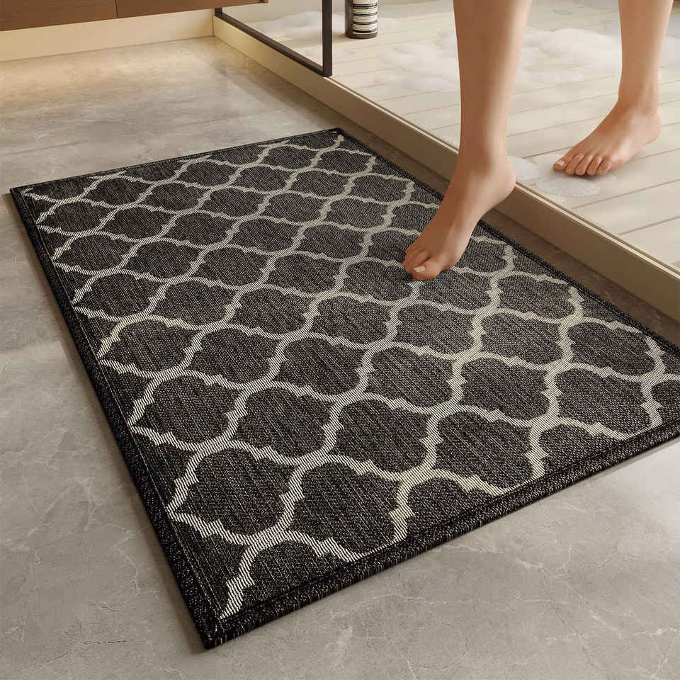 Alfombra de Baño Minimalista Rectangular con Patrón Geométrico, de Fibra de Poliéster Absorbente y Antideslizante para Uso Doméstico