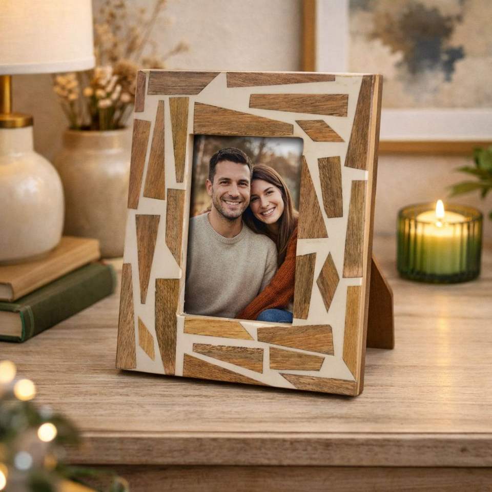Marco de Fotos Minimalista de Resina con Diseño de Columna Acanalada, Hecho a Mano, para Montaje en Pared, Orientación Vertical