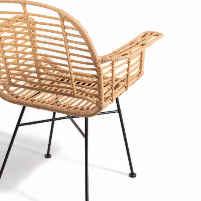 Silla de Diseño Minimalista con Mimbre y Metal, Silla de Comedor Tejida a Mano con Material Resistente para Decoración del Hogar