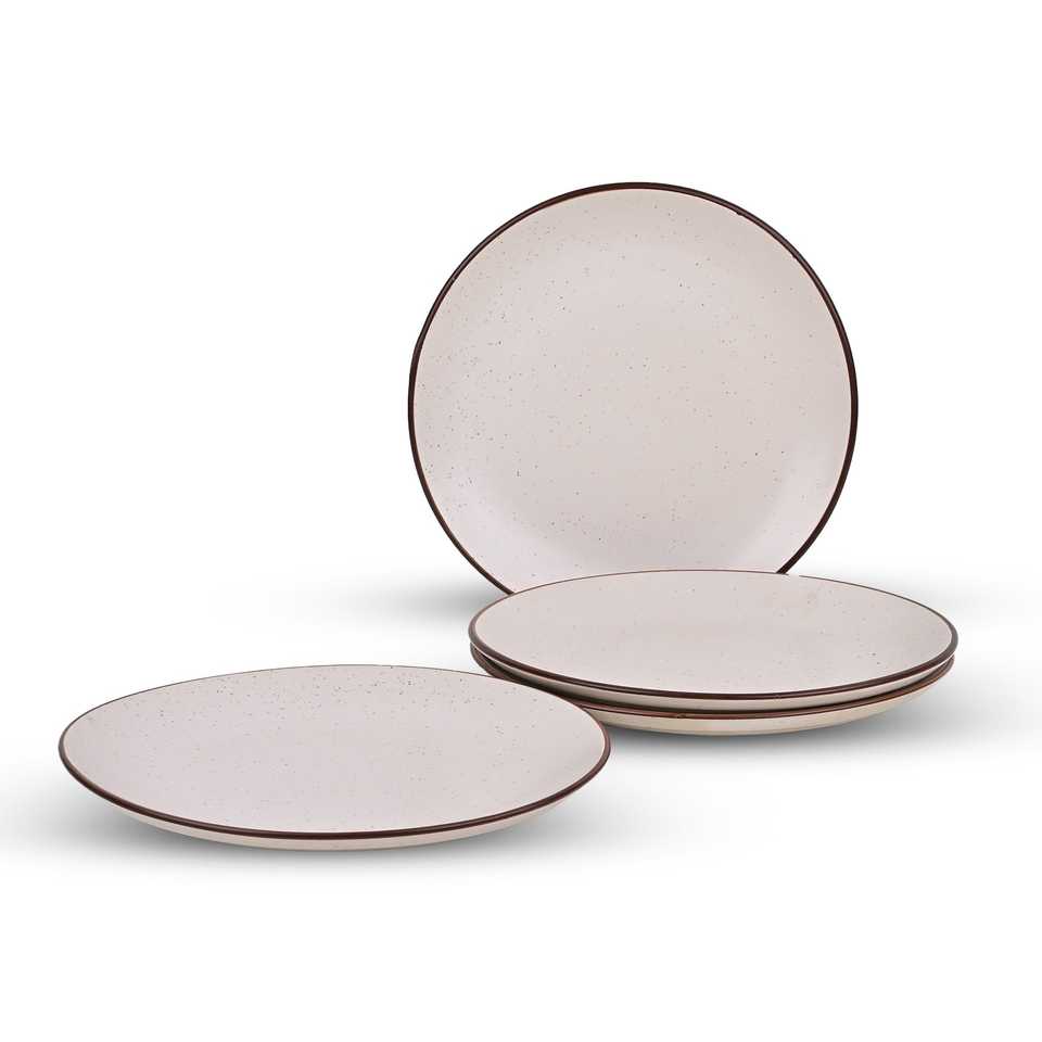Juego de Platos de Cena Minimalistas con Borde Negro y Diseño de Puntos, 4 Platos Planos de Cerámica Pintados a Mano de 10.5 Pulgadas para Fiestas, Eventos y Hoteles