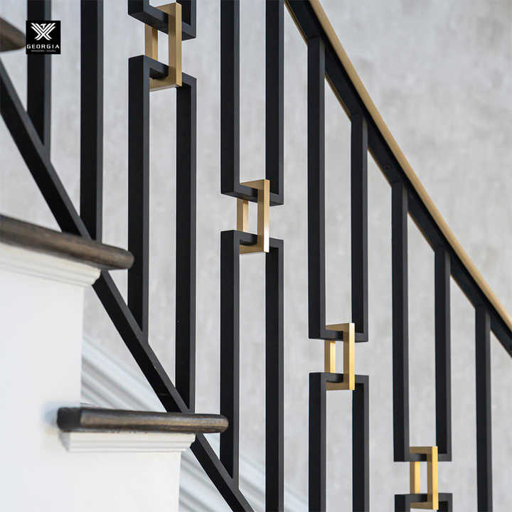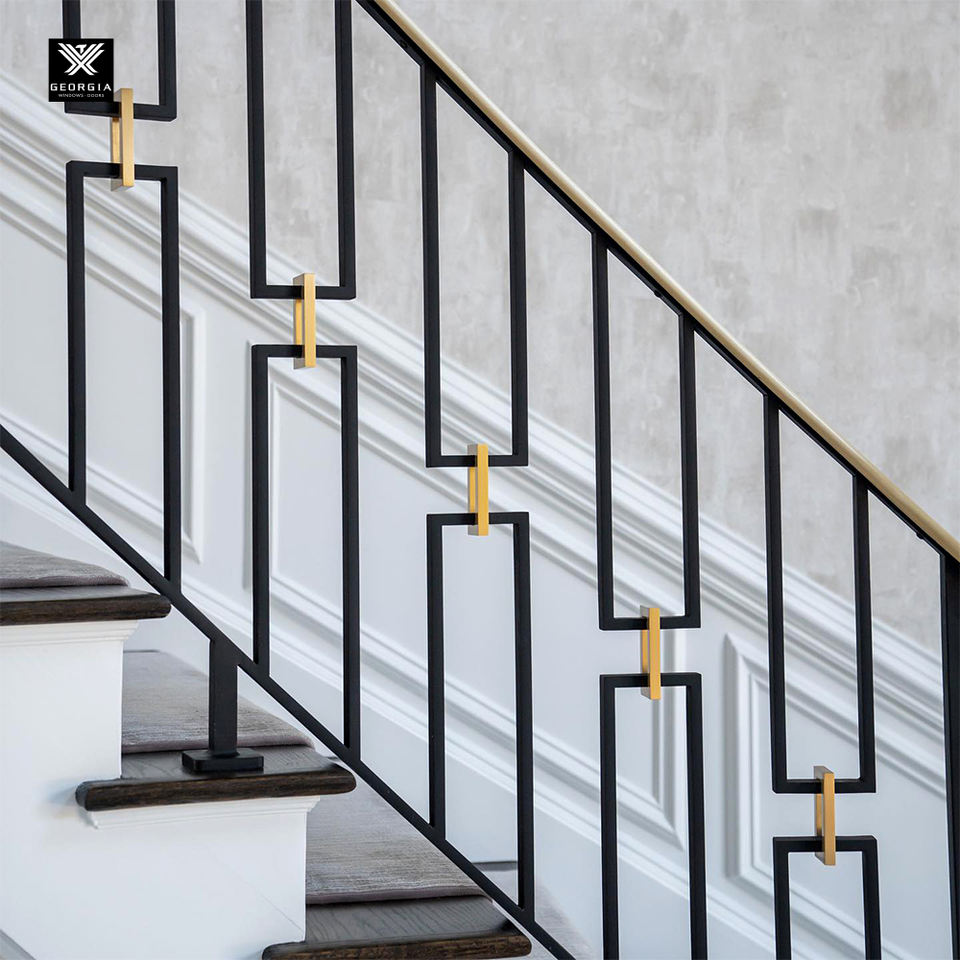Barandilla de Escalera de Hierro Forjado Rústica de Diseño Minimalista con Pasamanos Dorado, Barandillas Interiores Fáciles de Instalar para Casas