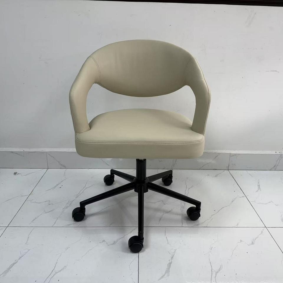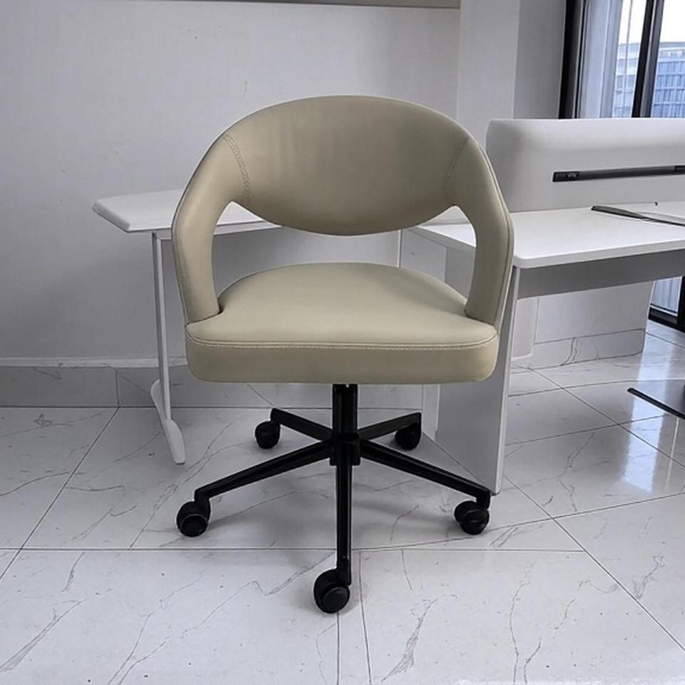 Silla de oficina giratoria de diseño minimalista con material de tela, altura ajustable y 360 grados para oficina en casa