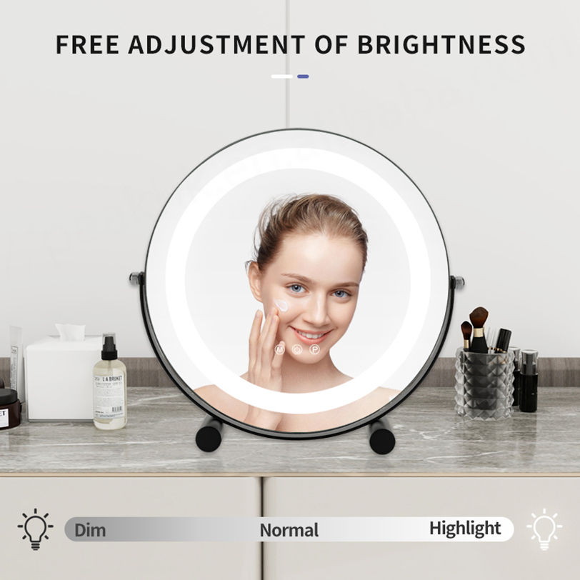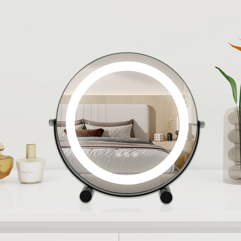 Espejo cosmético negro de escritorio minimalista, luz de mesa, pantalla táctil, espejo de tocador de maquillaje Led