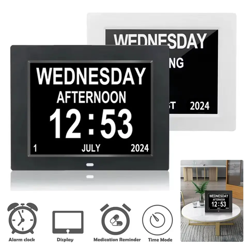 Reloj de calendario con alarma Digital minimalista, recordatorio de tiempo de medicina multilingüe para decoración de pared/escritorio para ancianos para el hogar