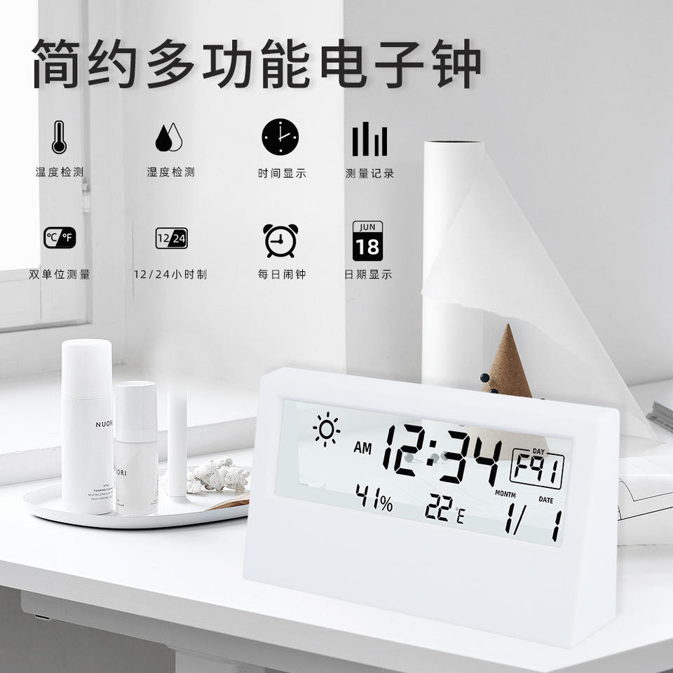 Reloj de Escritorio Digital Minimalista con Termómetro e Higrómetro, Pantalla Grande, Funciona con Batería, Reloj Despertador para Interiores