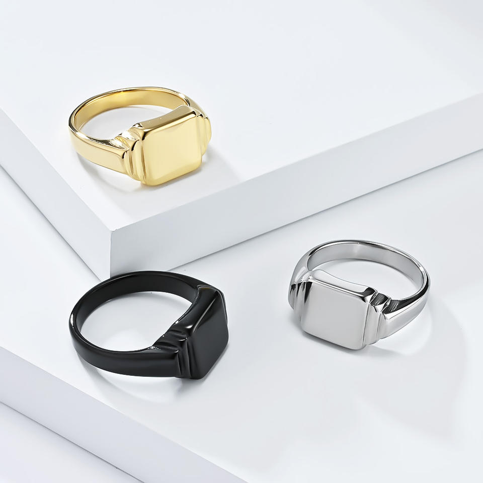 Anillo Minimalista Geométrico Cuadrado de Acero de Titanio Unisex, Joyería en Oro, Negro y Plata, Regalo