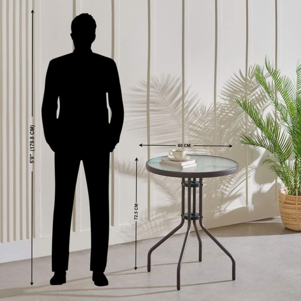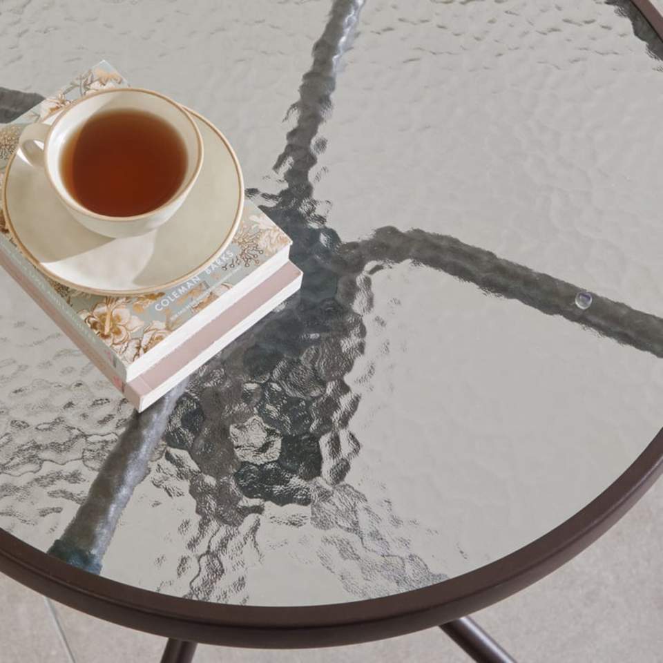 Mesa de Té Minimalista con Tapa de Vidrio para Terraza y Balcón, Muebles de Exterior con Superficie de Vidrio Templado y Metal Resistente