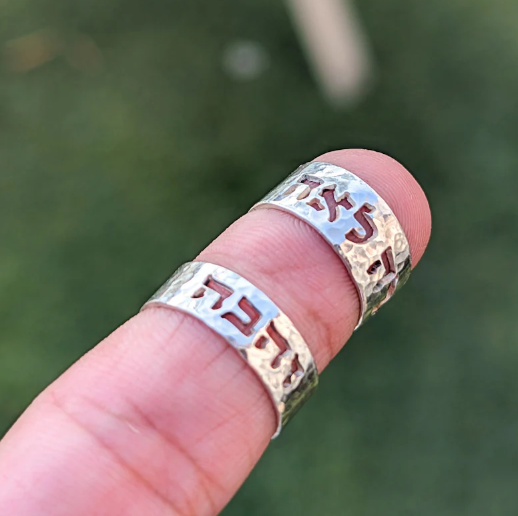 Anillo de nombre hebreo martillado minimalista, joyería judía, verso de la Biblia personalizado, soy mi amado, esto a pequeño paso, regalo israelí Buniqe Il