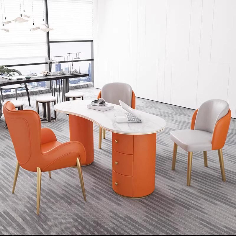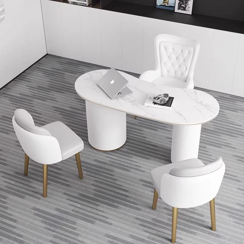 Escritorio de ordenador de oficina en casa minimalista, Mesa Ejecutiva de salón de belleza moderna, mesa de oficina con tapa de losa de roca