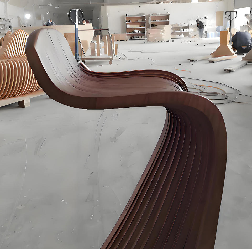 Minimalist Integrated Wood Slice Modern Curved Bar