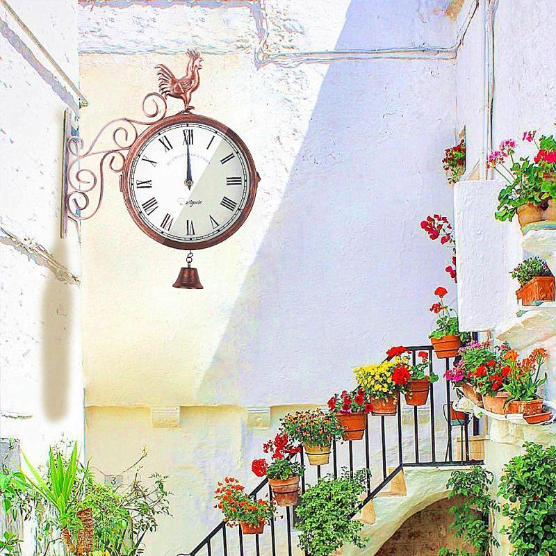 Reloj de gallo para colgar en la pared de hierro minimalista, decoración artística creativa para el hogar, reloj colgante de doble cara, sala de estar