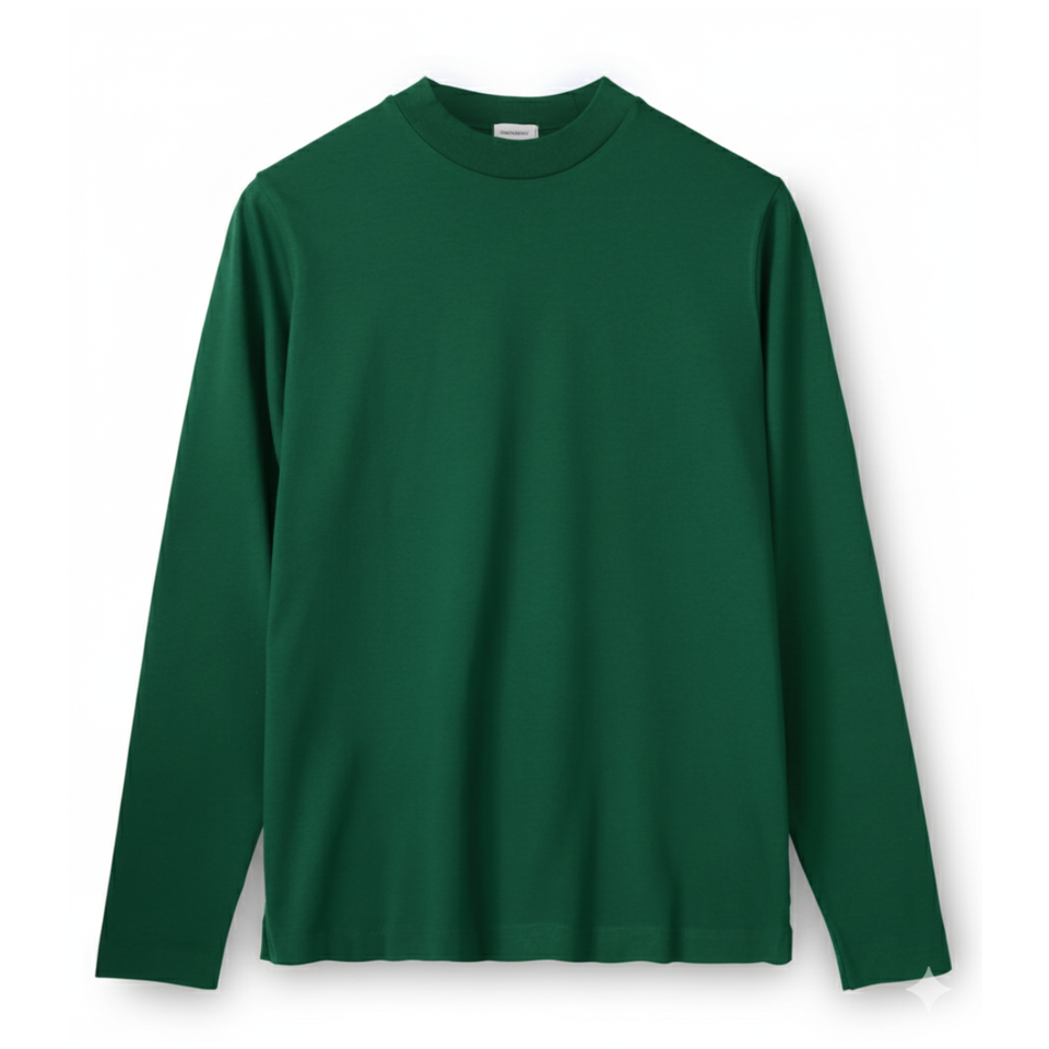 Camiseta Minimalista de Manga Larga con Cuello Alto para Hombre, Suave y Transpirable, de Algodón, Color Sólido, Prenda Superior Esencial, Logotipo Personalizado, Camiseta Extra Grande