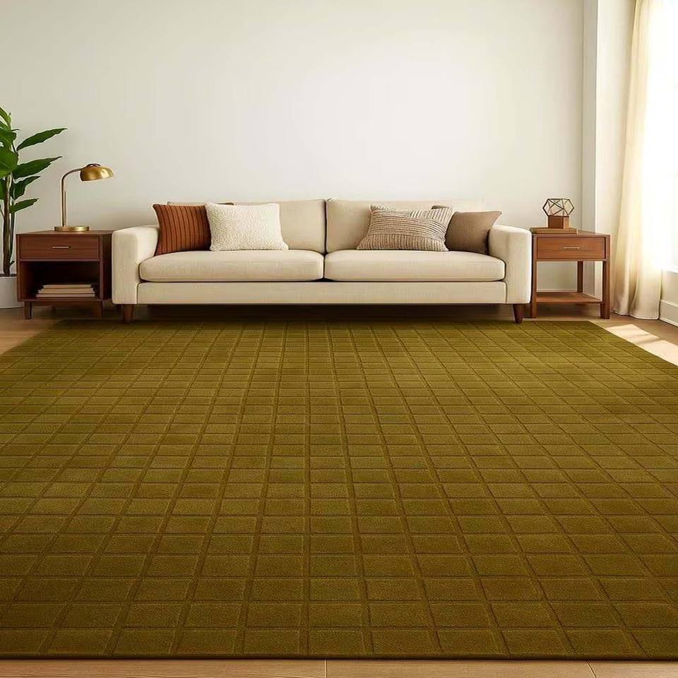 Alfombra Minimalista con Patrón de Cuadrícula Oliva, Alfombra Moderna de Textura Suave Hecha a Mano para Sala de Estar, Dormitorio, Oficina, Decoración del Hogar