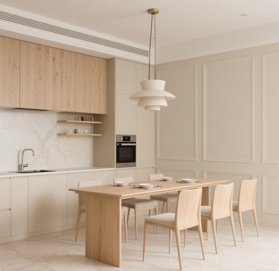 Cocina Serena minimalista: diseño de concepto abierto para una vida sin esfuerzo