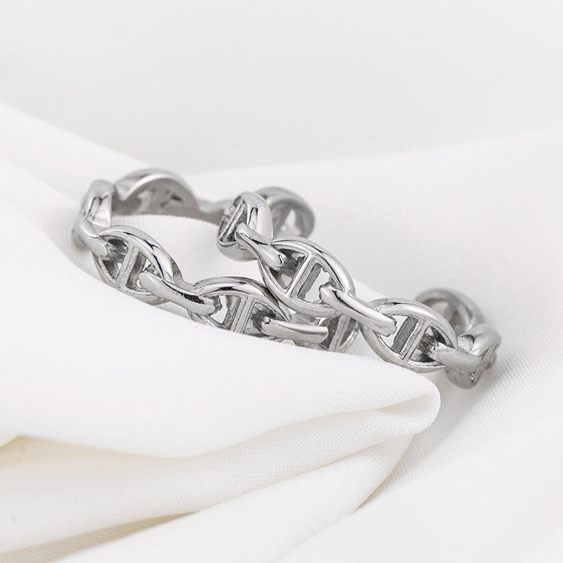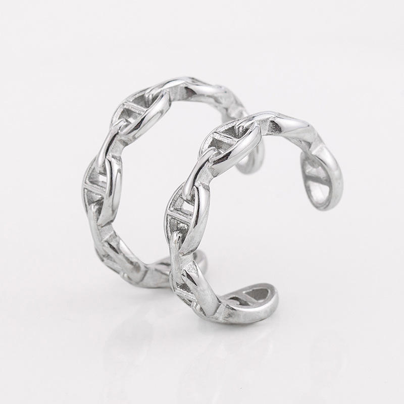 Anillo abierto con cadena de acero de titanio minimalista para hombres y mujeres, regalo de joyería de estilo punk