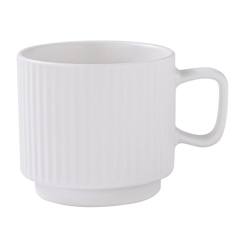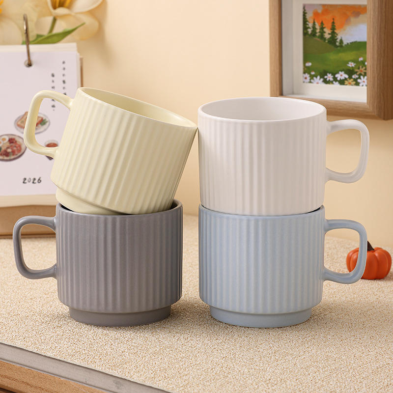Minimalist Vertical Striped Ceramic Mug Customizable Office Coffee Cup with Handle