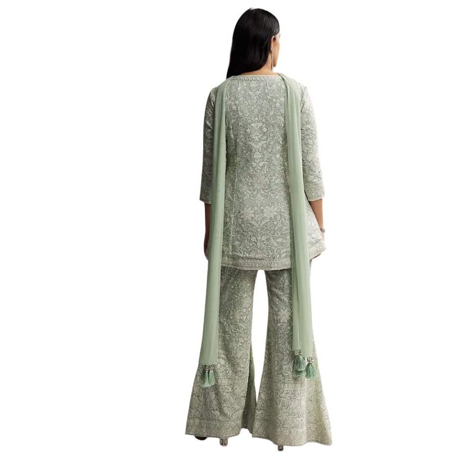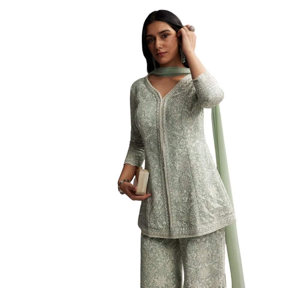 Menta azul Georgette Palazzo traje con lentejuelas y Resham trabajo al por mayor mujeres Ropa Étnica OEM fábrica de ropa proveedor a granel