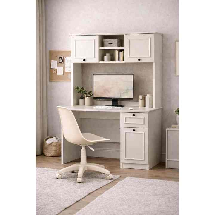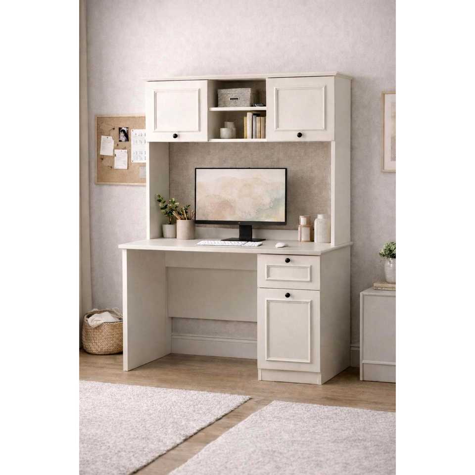 Escritorio de Estudio de Madera Duradero y Ecológico Estilo Rústico Mira con Estantería Integrada, Mesa de Escritura Grande, Muebles para Oficina en Casa