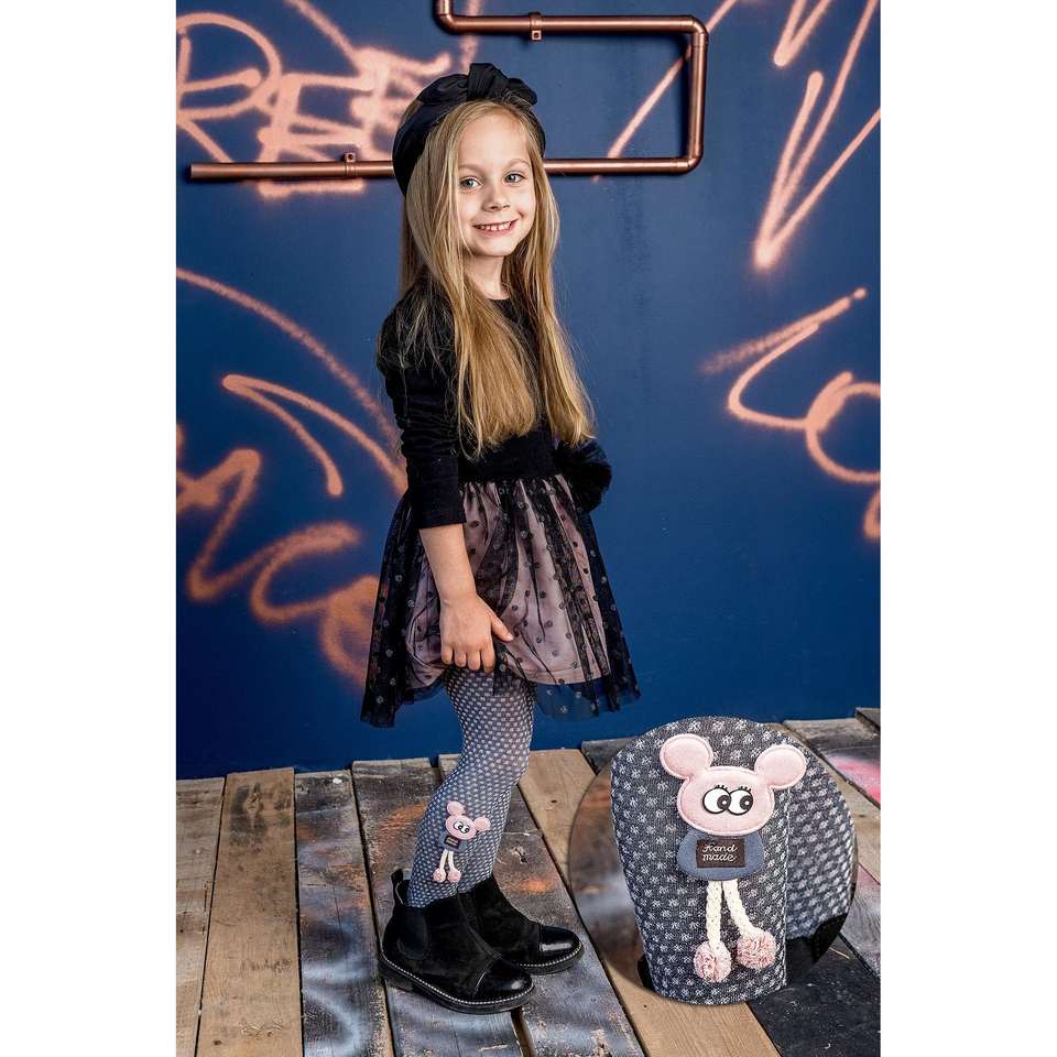 Medias para niñas con aplicación de ratón "MIRABELLE" cosida, Medias para niñas con aplicación de ratón "MIRABELLE" cosida