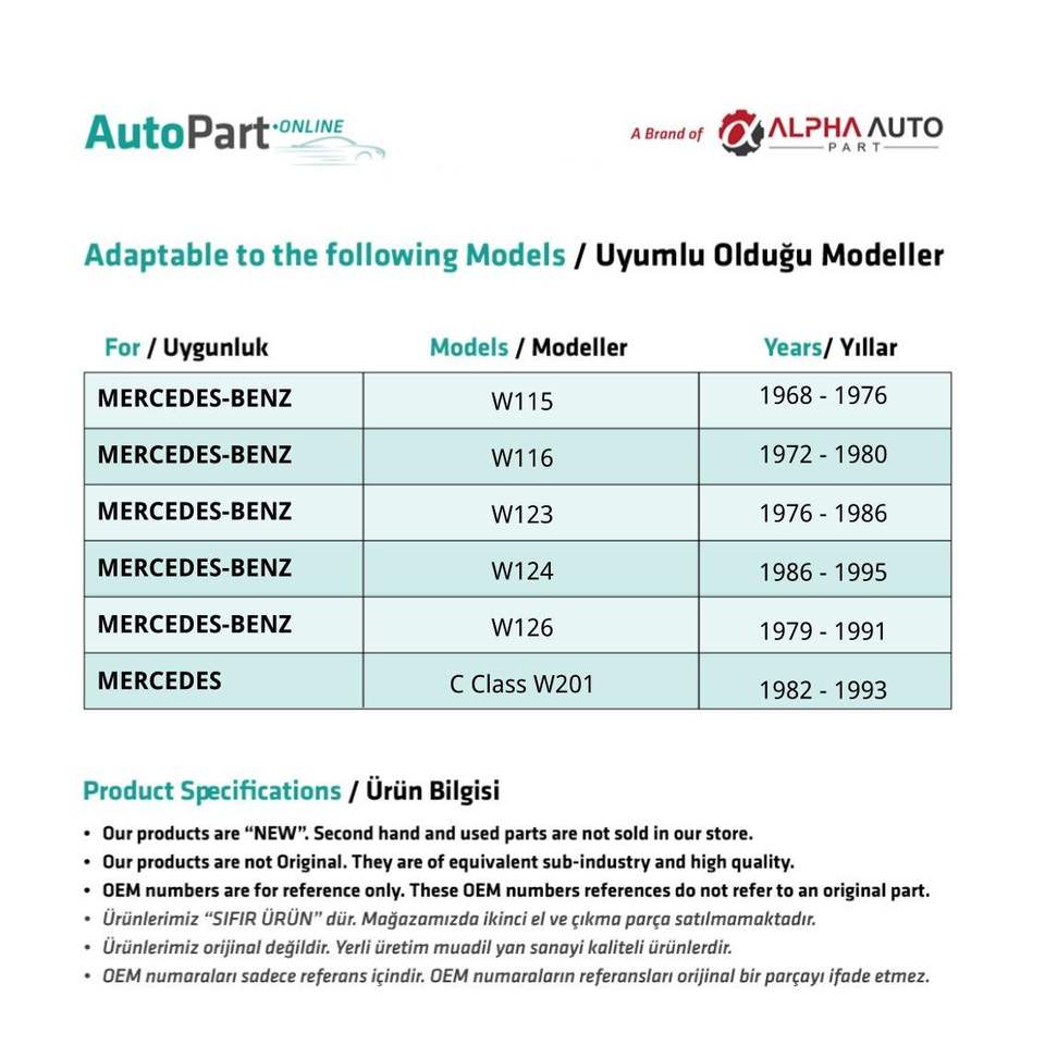 Marca:Mercedes Compatible Spare Parts